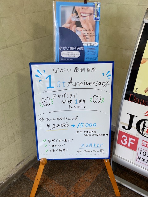つきましては「オープン1周年記念」と題しまして、ホワイトニング価格を上下22000円のところを期間限定で15000円で提供させていただきます。